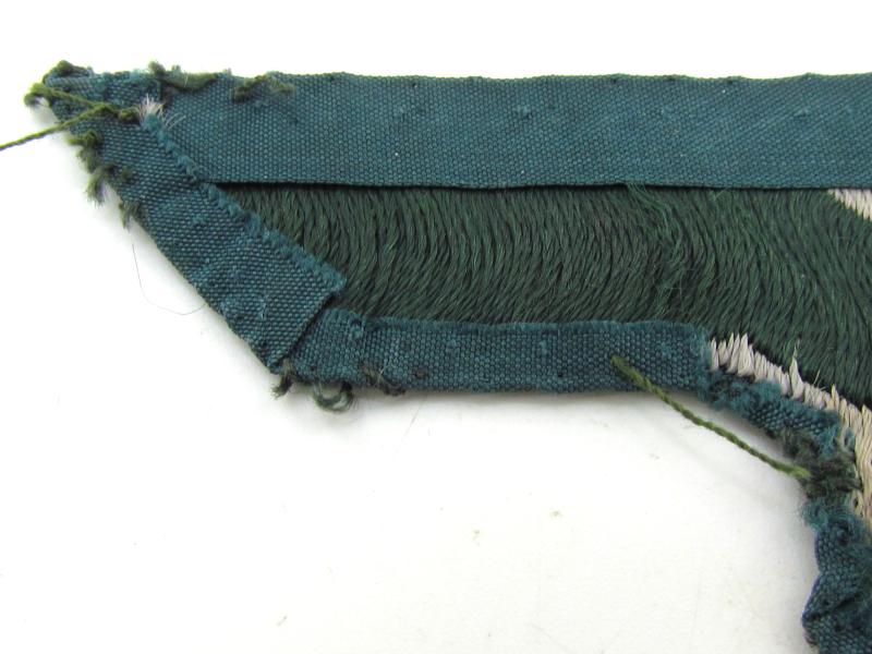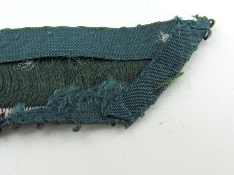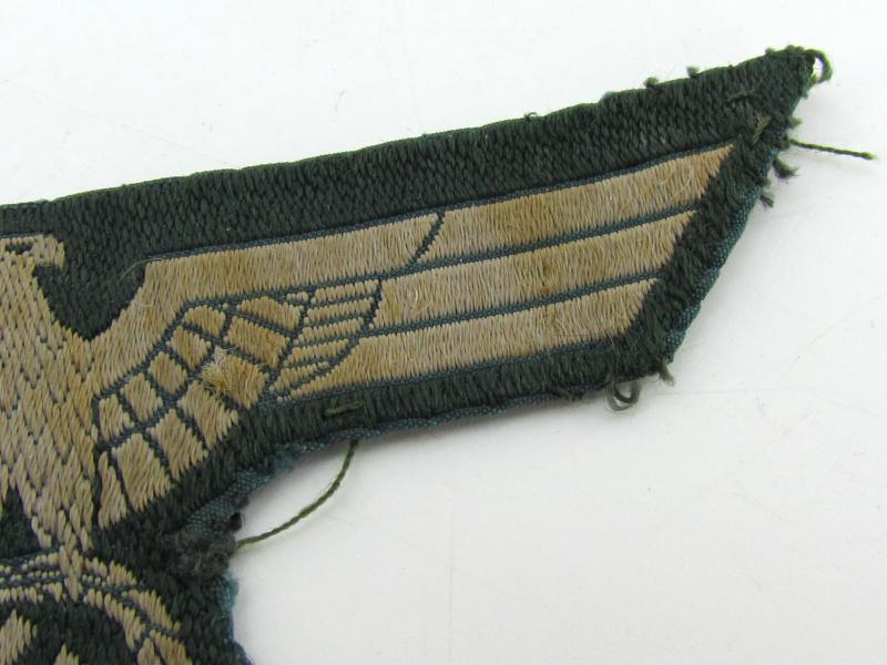 M36 pattern breast eagle. Flat woven ‘BeVo-weave’ example on dark green backing. Issued on all Heer tunics Uniform removed example.