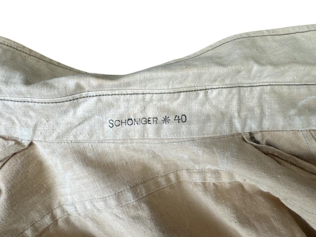 The shirt has all its originally sewn buttons, originally sewn breasteagle, and it is nicely marked Schöniger 40.