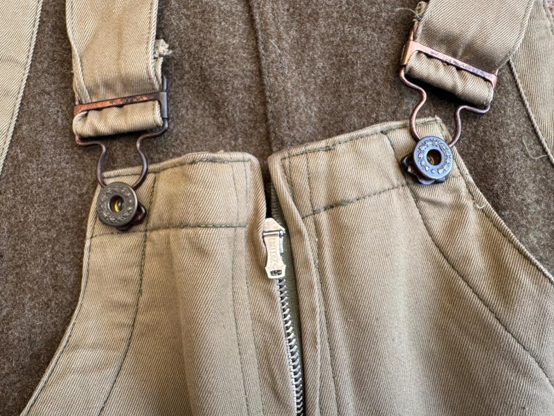 US WW2 tank crew trousers (overall) with all zippers in good working condition and maker marked “Conmar” In very good mannequin size. Great to complete an American WW2 tank crew member. in a very good condition