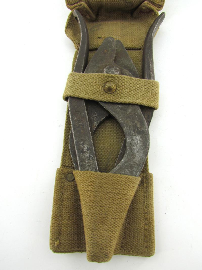 Very nice British WW2 wire cutters in original webbing pouch. Pouch made by “Bagcraft Ltd.” and dated “1941” A very nice British WW2 wire cutters set in very good condition.
