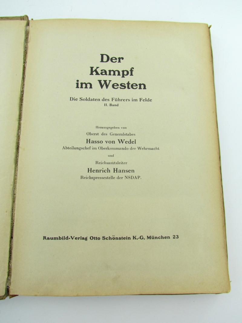 This is a hardcover 3D Book, the book was published in 1940 by the 'Raumbild-Verlag Otto Schönstein K.G.' from München. The book is covering the campaign on the western front in Holland, Belgium and France. The book is complete with all 100 stereo photographs and the special fold-out metal glasses.