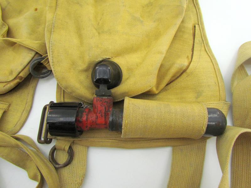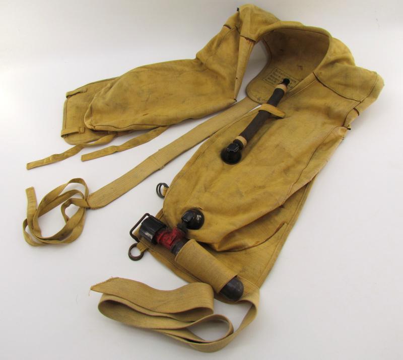 FL30154-2. Manufactured by BVN (Flügel & Polter K-G, Leipzig, Germany). Later war example of the 10-30 B schwimmweste with plastic fittings on the inflation tube and CO2 bottle mounting point.