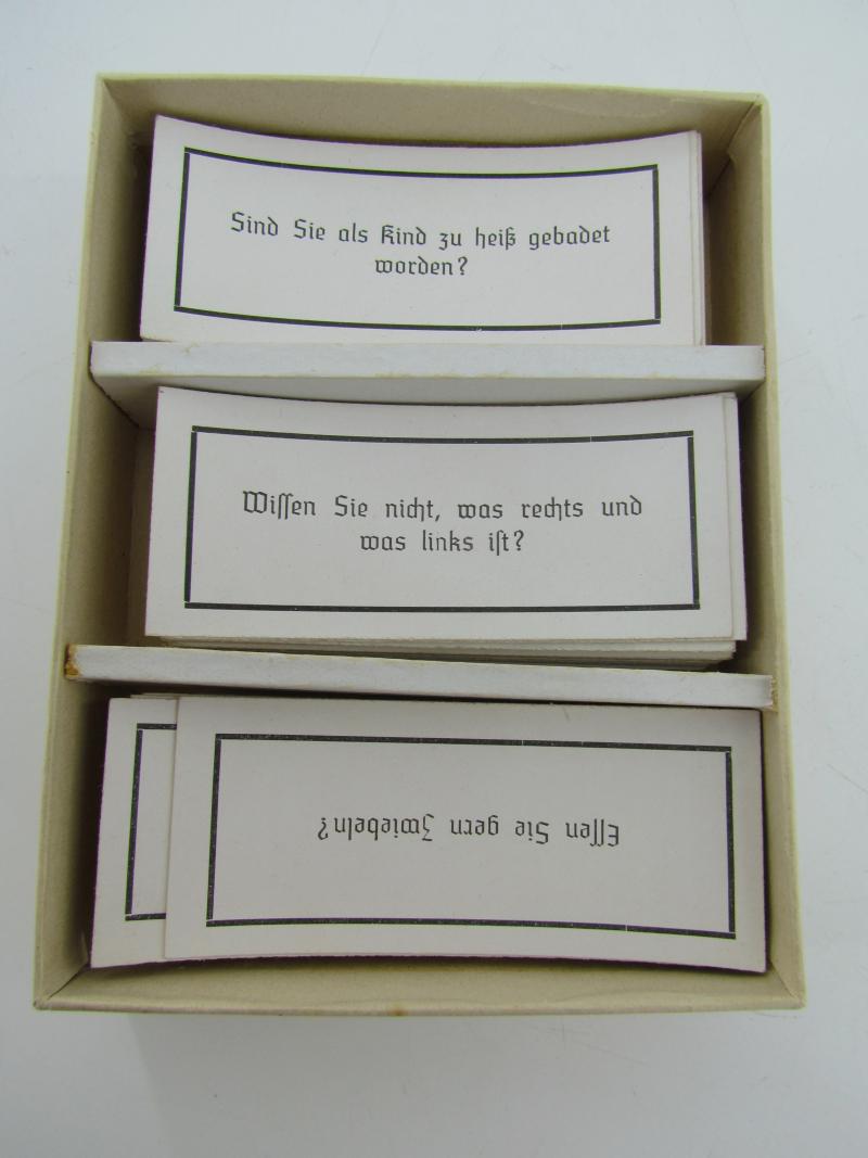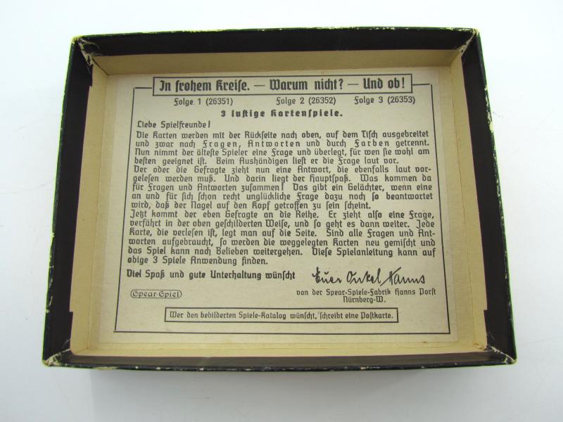 German Cardgame 'Und ob!'. This game was made by the 'Spear-Spiele-Fabrik Hanns Porst' from Nürnberg. The set looks to be complete with all question and answer cards and is stored in the original carton box