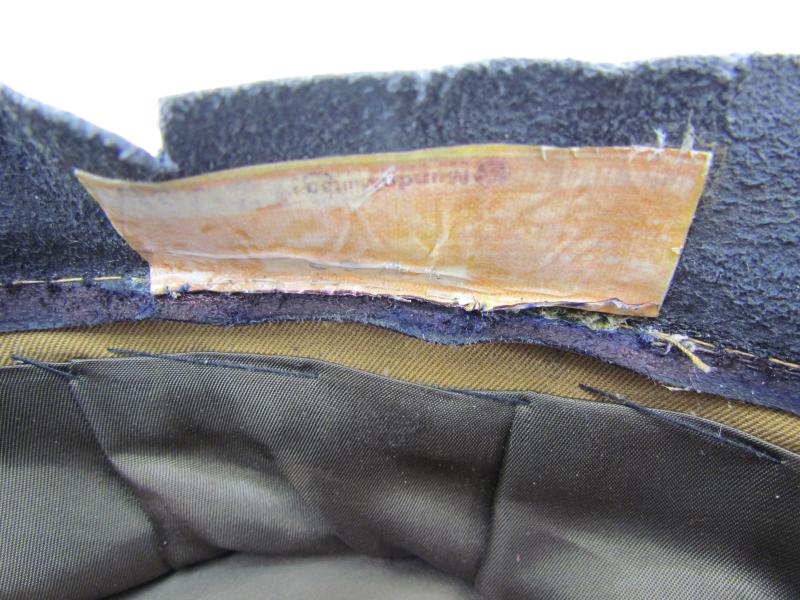 Complete with its genuine national insignia pierced through the front of the visor. RZM tag is still present under the sweat band but hard to read.