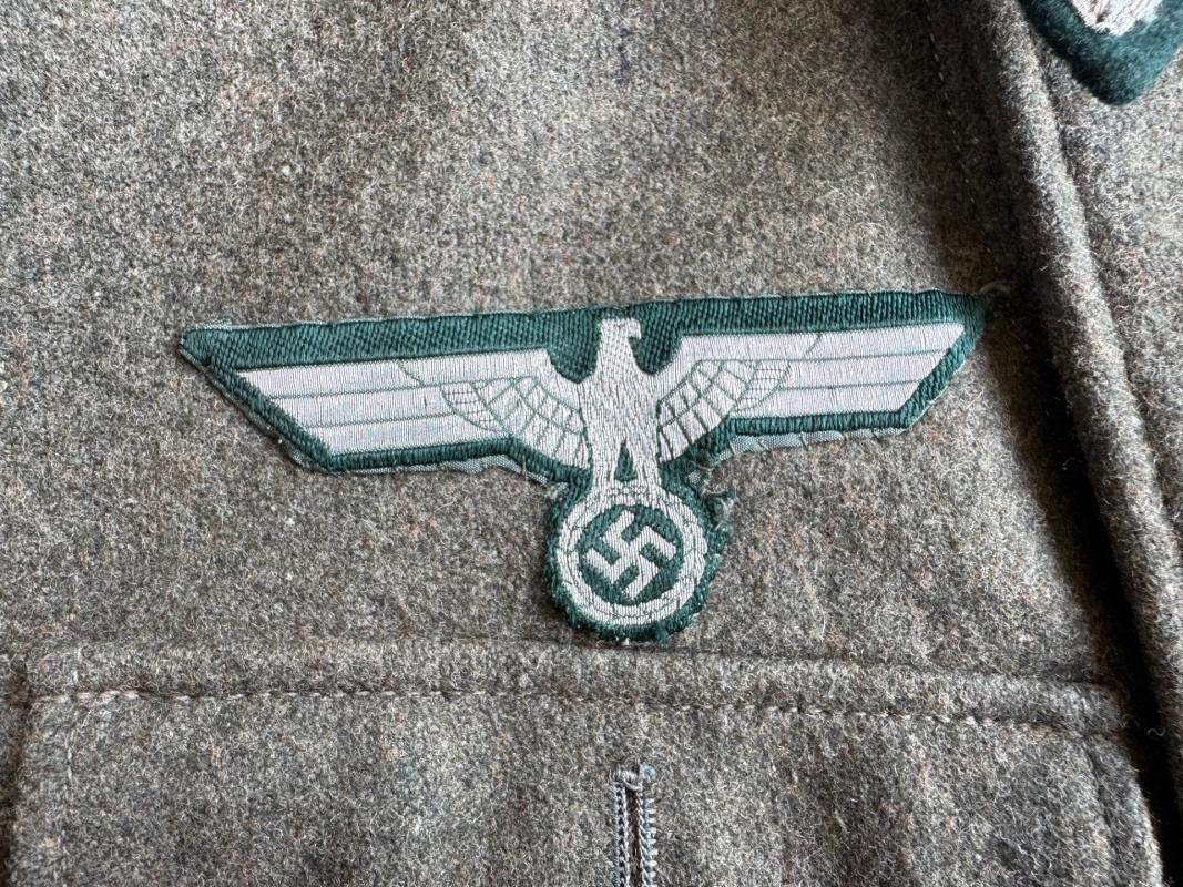 The collar tabs and 3 medal loops are originally applied, and the breast eagle has been handsewn on the tunic.