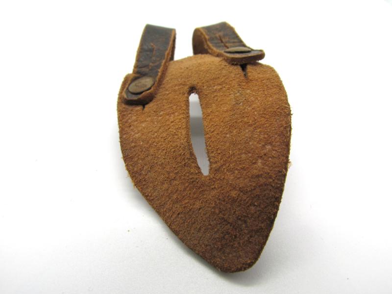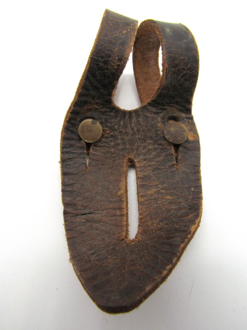 Leather buttoning tab or Knöpflasche in used condition. Very nice to complete your binoculars