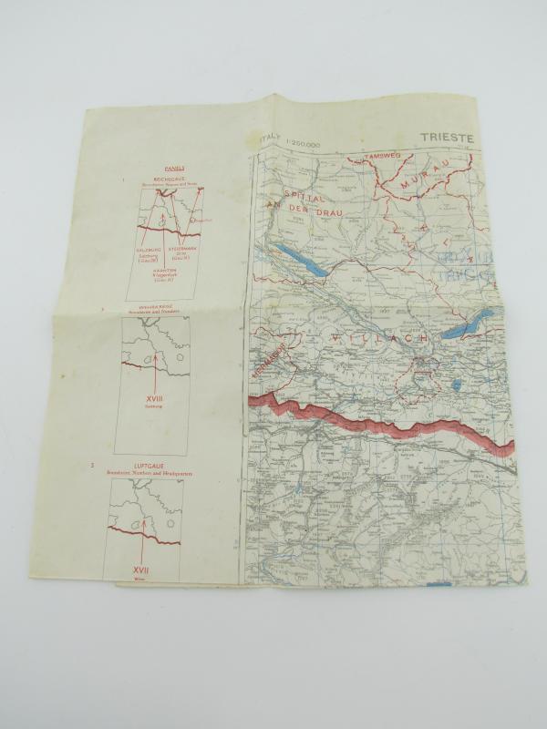 In a very nice used condition a US WW2 Roadmap of a part of Trieste The map comes in a scale from 1 : 250 000 and has a size of approx 74 x 59 cm. A very nice used mapcard for display!