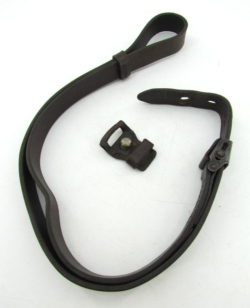 K98 Leather Sling (98K Trägeriemen), complete with leather retaining tab The brown leather sling is WaA80 stamped the retaining strap is nicely marked and dated gxy41