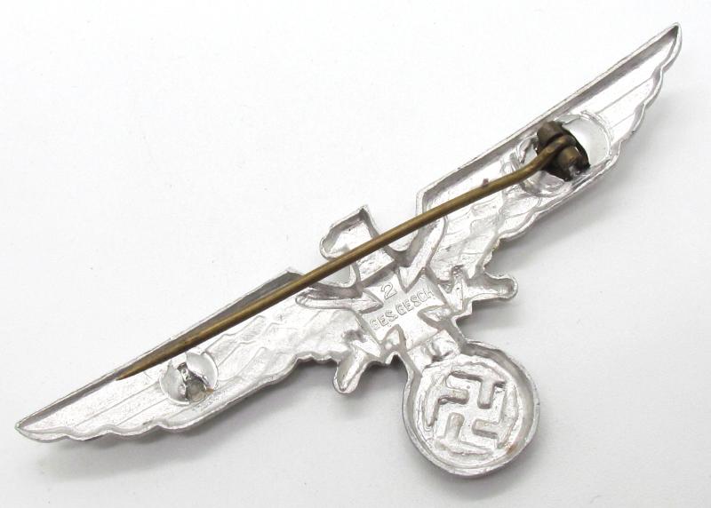 Aluminum made breast eagle for the Veteran organisation ‘Kyffhäuserbund’. Maker marked ’2’ Ges. Gesch. The catch is missing Very nice for display