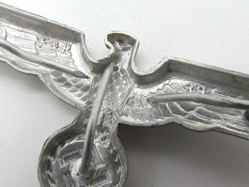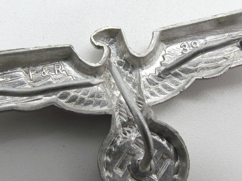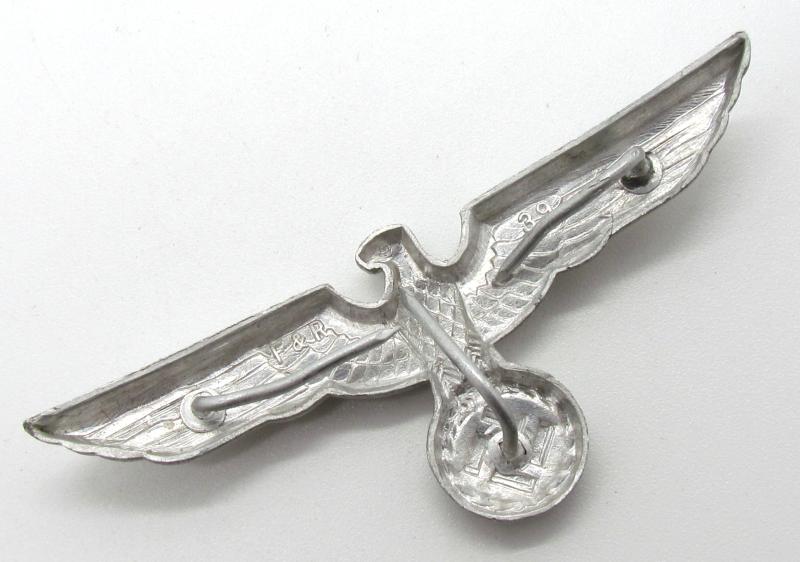 Original German WWII Heer Aluminum Visor Cap Eagle Marked F. & R.39 All three prongs are present unissued condition