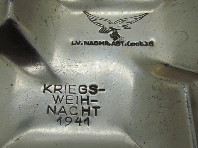 a wartime metal ashtray made from aircraft material, aluminum or electron, Luftwaffe, beautifully marked, dated 1941.