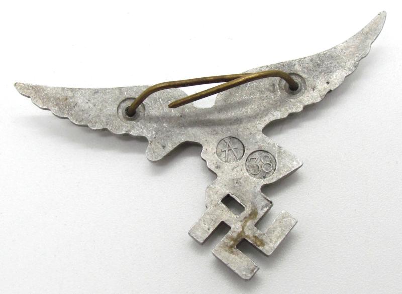An early and seldom encountered aluminium Peaked (Visor) Cap Luftwaffe Eagle, the eagle with the first pattern droop or swept tail.