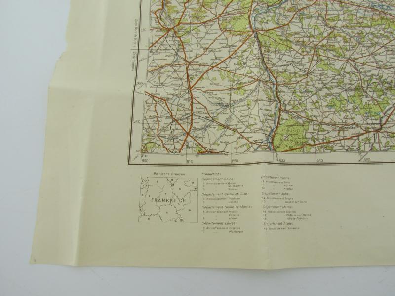 Deutsche Heereskarte Sonderausgabe 1.3 East Paris 1940 About 65,5 x 50 cm in a very good condition