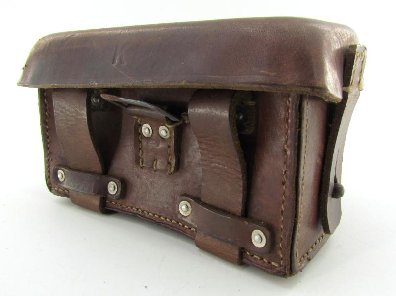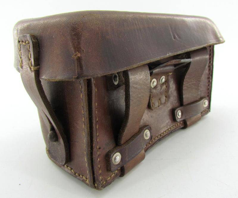 leather medic pouch – right side – in very good condition. Leather is supple and strong. Maker marked by dny (K. Bollmann, Tuttlingen ), dated 1942.