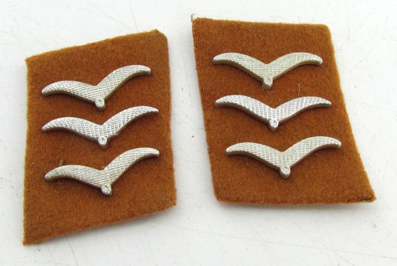 matching set of Luftwaffe Signal Corps Obergefreiter collar tabs; constructed of rust-brown wool in a very good condition
