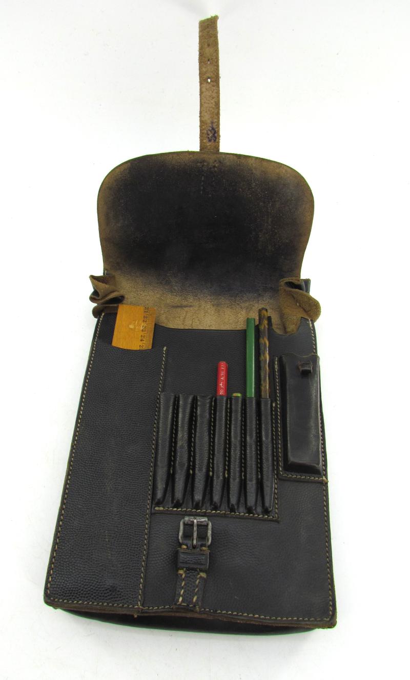 Very nice, black colored leather map case in very good condition. some pencils are included No stamps visible anymore