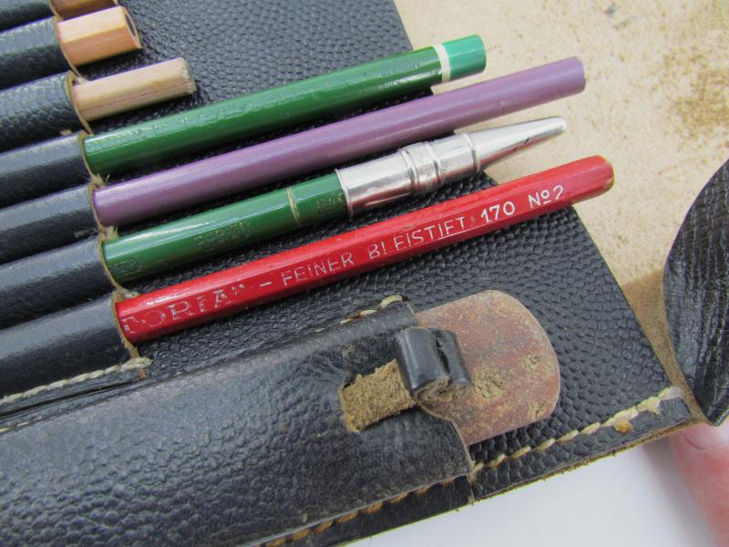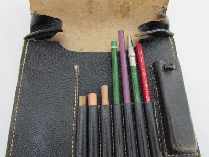 Very nice, black colored leather map case in very good condition. some pencils are included No stamps visible anymore in a very good , almost mint condition!