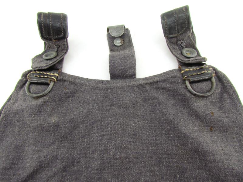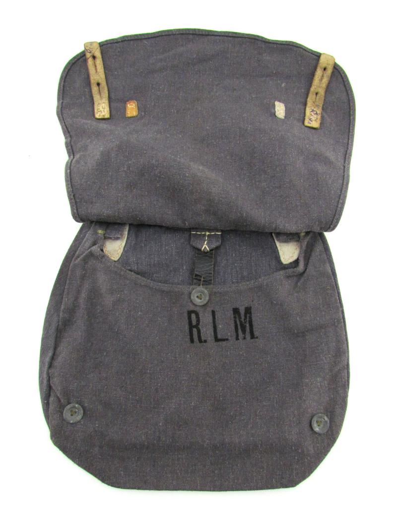 Luftwaffe Bread Bag Model 1931 (Brotbeutel 31). The blue-grey coloured breadbag is re-inforced with leather parts, Nice original Luftwaffe bread bag in used but very good condition!