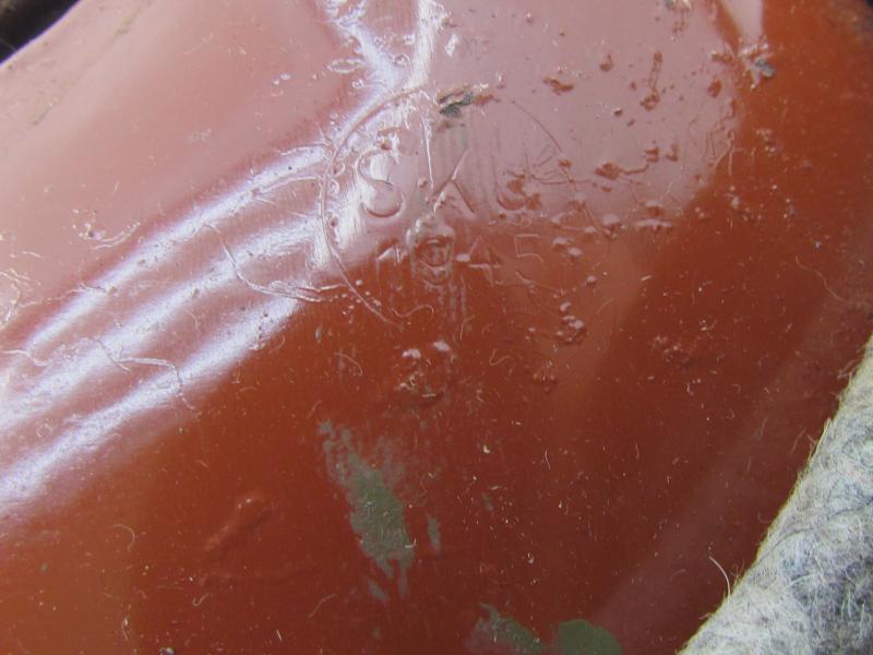 The red painted steel canteen is nicely maker marked and dated "SKU 1945"