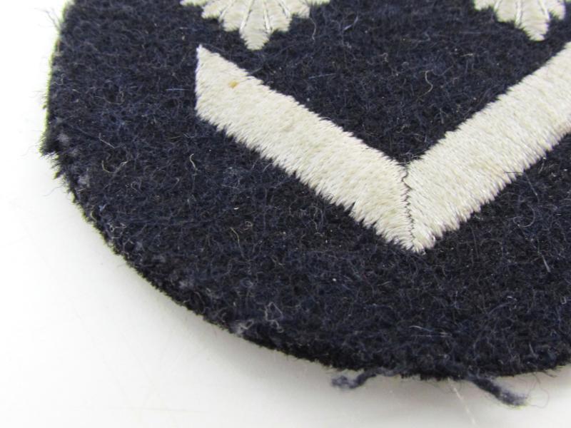 Nice DJ (Deutsche Jugend) 'Oberjungzugführer' armbadge (Ärmelabzeichen). These rank-badges were also used within the Marine HJ: the rank signified was then: 'Marine-HJ-Oberscharführer'. The badge is executed in dark-blue wool having two silver (off-white) embroidered stars above a single chevron.