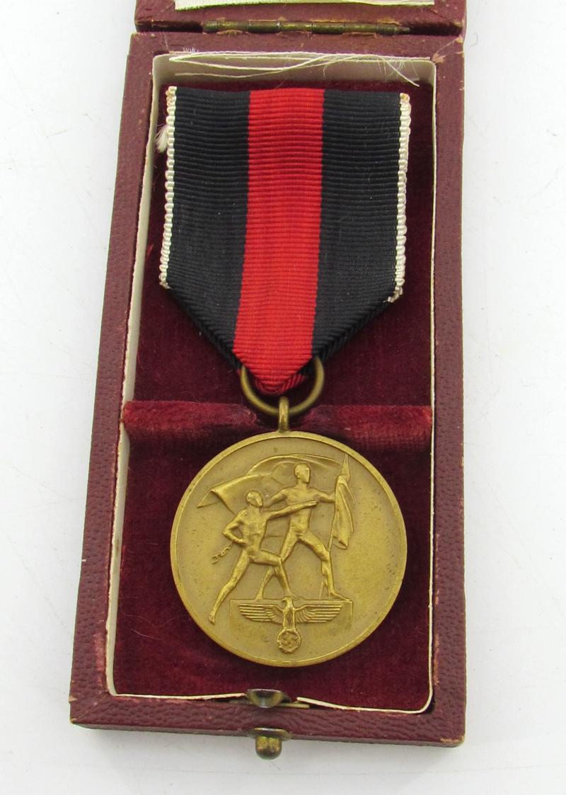 Sudetenland annexation medal 1938 ( Anschluss Medal ) with Case