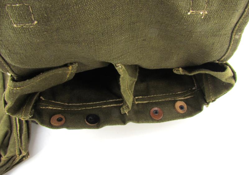 Offered here is an original pair of late-war Wehrmacht Pioneer (Pioniere) equipment bags. These canvas assault pouches are of the simplified type, manufactured during the final phase of WWII (circa 1944–45), when material shortages and production speed led to streamlined field gear.