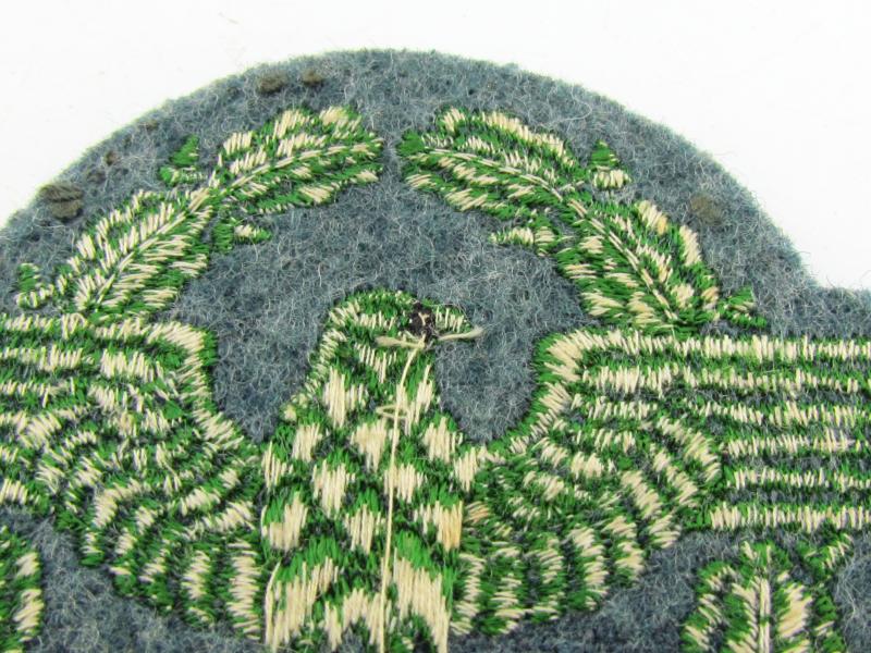 This machine embroidered version was to be worn by NCO’s (the German Police had no enlisted ranks). The eagle is embroidered in green on a field-grey woolen background.