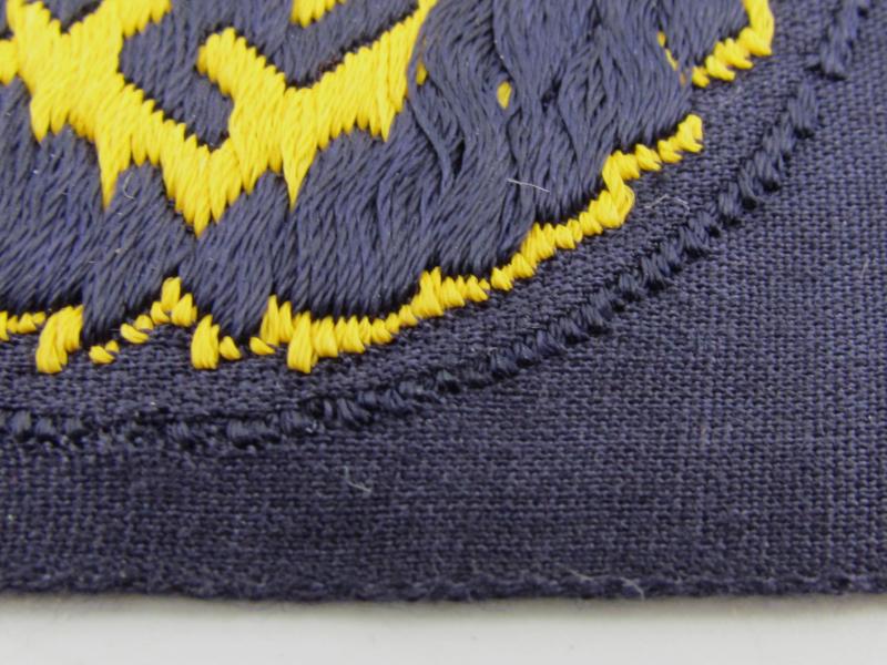 The eagle is executed in golden-yellow coloured linnen on a dark-blue coloured linnen background. Nice original eagle in mint and unissued condition.