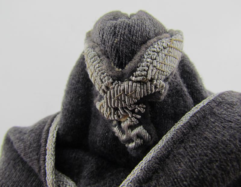 Luftwaffe Officer's overseas cap (Schiffchen für Offiziere). Luftwaffe blue/Grey woolen construction overseas cap having silver piping for officers ranks along the top edge of the fold down panels. The cap is having an original applied hand-embroiderd cap-eagle and black/white/red national tri-color cockade. The insignia are neatly period hand applied