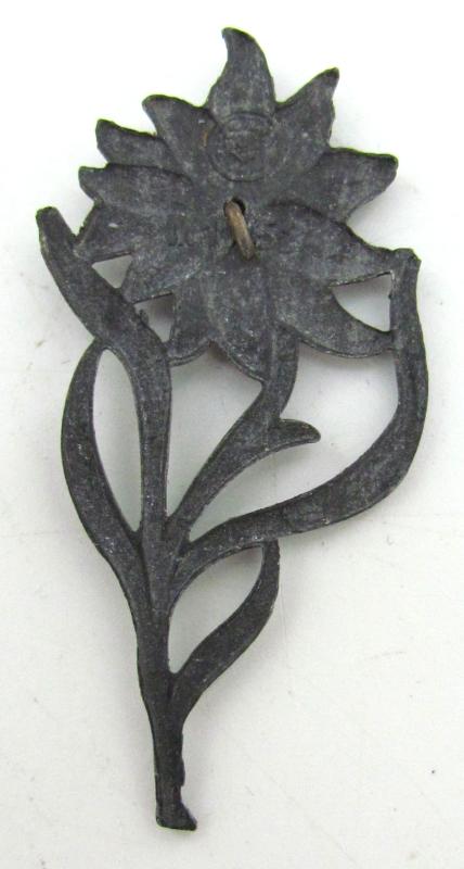 original aluminum made ‘political’ edelweiss either used for SA or Hitlerjugend units stationed in the Alps. Maker marked by RZM M1/152 (Franz Jungwirth, Wien)