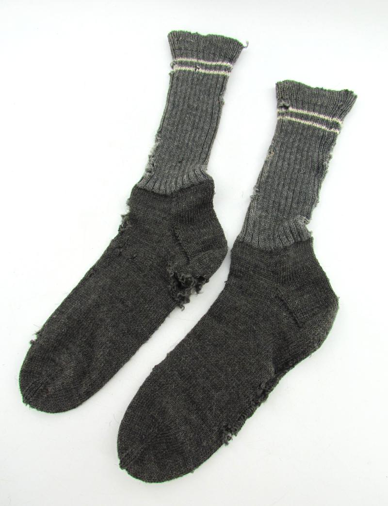 Pair of Wehrmacht Socks (Socken). The grey woolen socks are showing two white coloured size rings indicating size 2