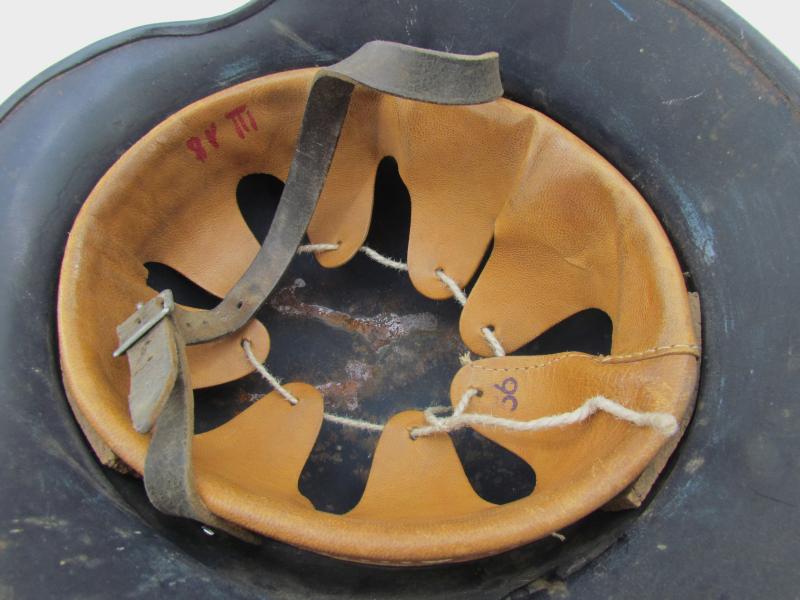 Very nice beaded M40 helmet with a rim (‘Beaded’) for a member of the German air-raid protection (Luftschutz). The helmet still retains a nearly complete decal up front, that shows nice details and patina. The helmet is complete with its liner, draw string and full length chin strap.