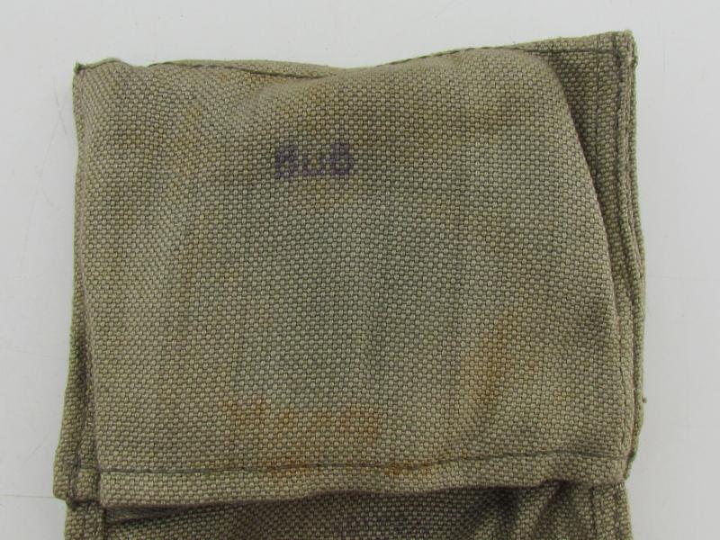 Set of 4 Wehrmacht Dust & SunProtection Goggles in Pouch (Augenschützer 42 mit Trageumschlag). The German army issued a wide variety of protective, special duty and general purpose glasses and goggles for assorted personnel including sun glasses for use in the desert or snowy climates. One example of the goggles utilized were the 'Augenschützer 42', which were developed in 1942 as inexpensive, easily manufactured, eye protectors. The Augenschützer 42 were produced in two models with colored lenses for sun protection and clear lenses for dust protection. These disposable goggles proved quite popular and saw wide spread use in all theaters of action. This is a complete set consisting of 2 dust protection goggles and 2 sun protection goggles. The goggles are stored in their original cloth pouch as found, the pouch is nicely 'WaA' marked and maker marked with 'gng' indicating production by the company 'Auer-Gesellschaft AG' from Guben.