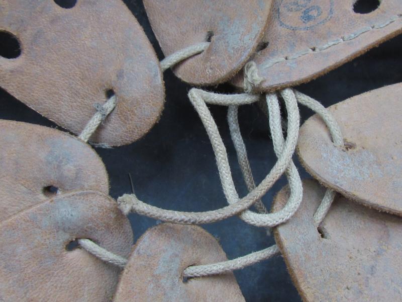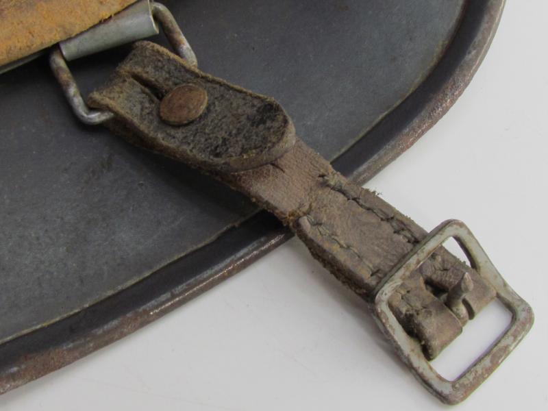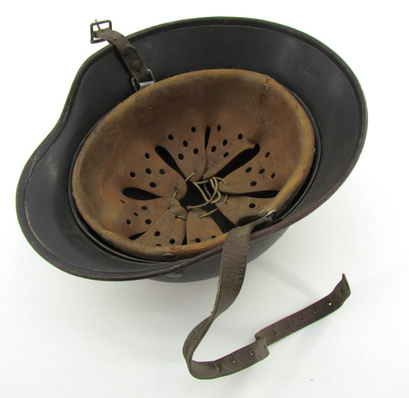 The interior of the helmet is a M31 leather liner with all eight fingers intact, the leather is still supple, the liner is a size '56' and it is complete with its original liner cord. The shell is marked with maker and size 'Q64'. 'Q' is indicating production by the 'F.W. Quist, G.m.b.H.' in Esslingen.