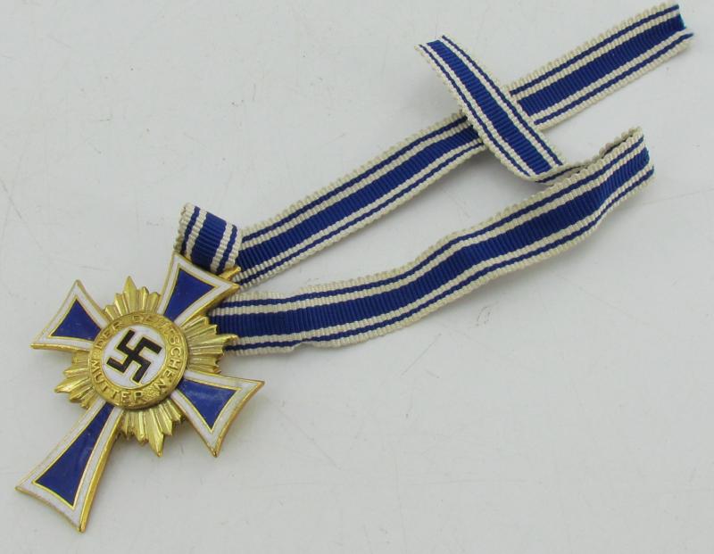 Ehrenkreuz der deutschen Mutter 1. stufe was awarded for exceptional merit to the German nation.” (to Reichsdeutsche and Volksdeutsche mothers who exhibited probity, exemplary motherhood, and who conceived and raised more than 7 children in the role of a parent)