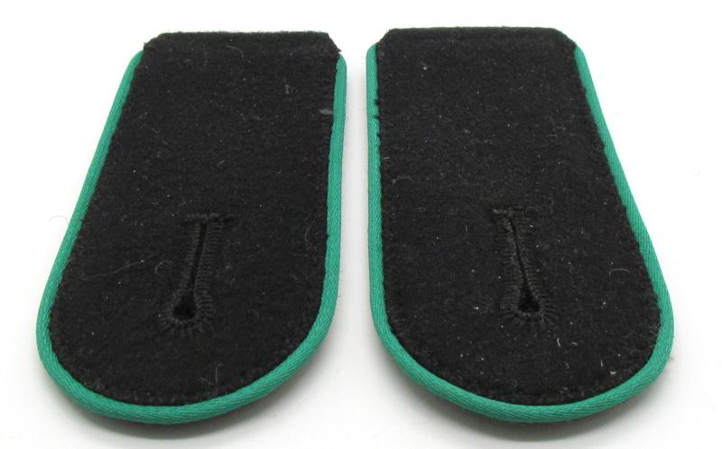 A set of grass green piped Waffen-SS shoulder boards for a member of the mountain troops ‘Gebirgsjägers’. Length about 10,5 cm in a very good condition!