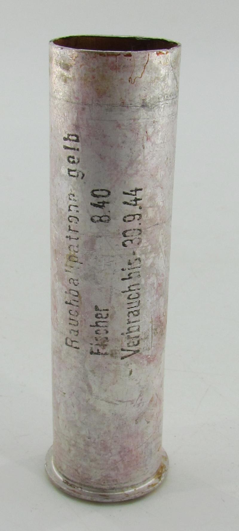 Wehrmacht (Empty) ,Rauchballpatrone Gelb Flare Gun Shell. dated 1940 Great for decoration or to complete a flare pouch In used but good condition.