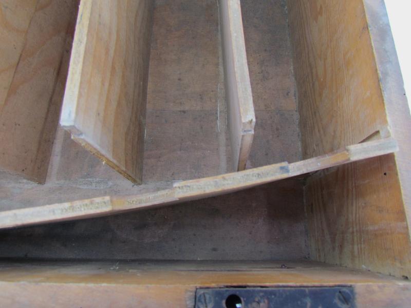 Scarce wooden box for spare components for Vorrat und Zubehör Gasanzeiger